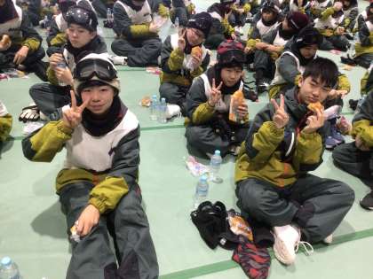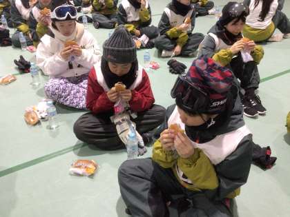 おはようございます。朝食は菓子パンです。これからゲレンデに向かいます。