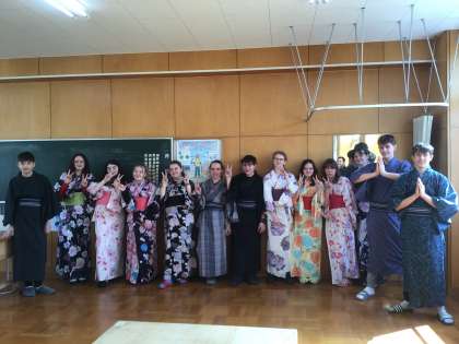 交流2日目は、折り紙、浴衣の着付け体験をしました。