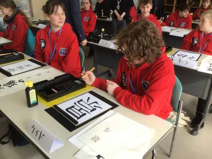 書写は、初めてでしたが、筆の使い方など上手にできていました。