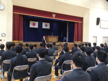 本年度から同窓生からお話を聞く機会を設けました。卒業する生徒に向けて、人生の先輩としての気付きをお話ししていただけました。「継続すること、チャレンジすること、自分で判断して決めること」の大切さを教えていただきました。