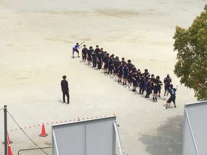 体育の授業では、まず元気いっぱいに準備体操を行い、体をしっかりほぐしました。その後、体育祭の種目である大縄跳びの練習に取り組みました。タイミングを合わせて跳ぶことの難しさに苦戦しながらも、声をかけ合い、みんなで協力して楽しそうに挑戦していました。
