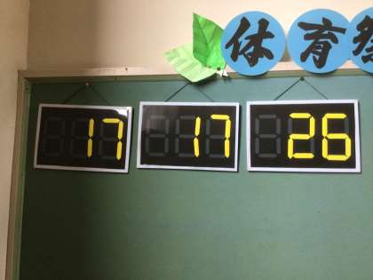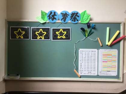 体育祭に関する掲示物が作られていました。長縄跳びの記録が更新されていきます。