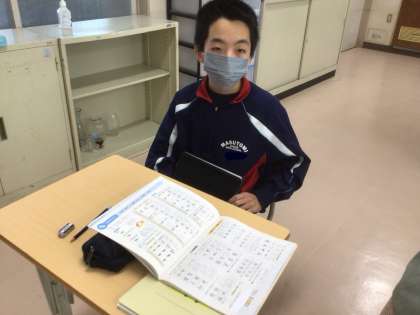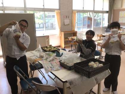 玉ねぎの袋詰めを行っていました。市場価格を調べて、少しお得な価格設定を考えています。また、書写の授業では、行書を丁寧に書いていました。