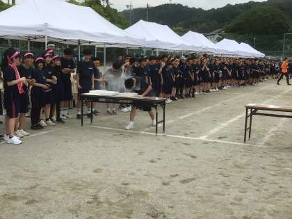 生徒会リレーです。 育友会のみなさまにもご参加いただきました。
