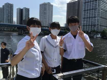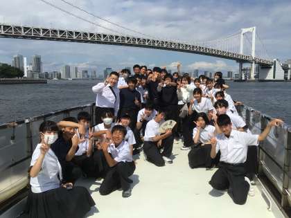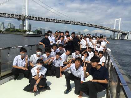 1組は東京湾クルージングで、レインボーブリッジの下をくぐっています。