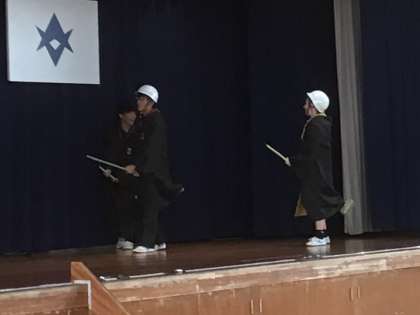よい夏やすみの過ごし方を生徒会役員が寸劇を交えて呼びかけました。