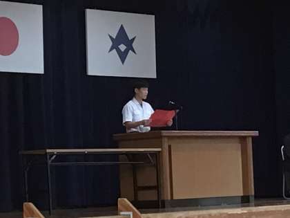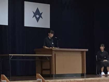 1年生の生徒は、「中学生になって熱く取り組めることに出会えたこと」2年生の生徒は、「仲間に悩みを話すことで、リーダーとして成長できたこと」3年生の生徒は「地域のボランティアに参加することで、様々考え方に出会い、自分が成長できたこと」について、話しました。