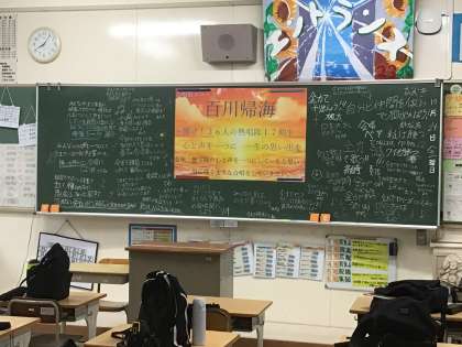 各クラスの黒板からは、学級へのメッセージが書かれています。