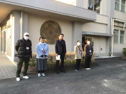 育友会役員、民生委員さん、生徒会役員であいさつ運動をしました。寒い中、早朝よりご参加いただきましてありがとうございました。