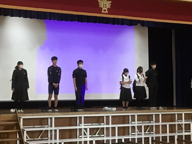 学校生活全般と服装、持ち物などの説明をしました。また、育友会副会長にもお越しいただき、育友会(PTA)活動について、お話ししていただきました。