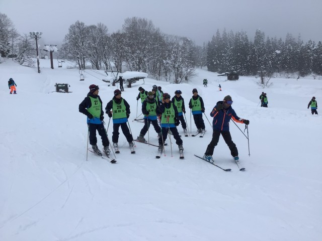 2日目のスキー実習もいよいよラストです。下の駐車場まで滑り降りたらゴールです。