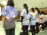 自分の色に染めたTシャツをまとい、立志式で個々の決意を述べました。