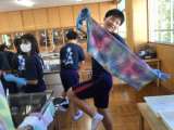 専門家の方に来ていただいて、2年生が美術の授業で手拭いを染めました。