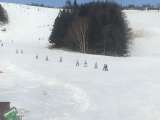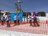 スキー研修の様子を高いところから。体操後、今日はさっそくリフトに乗車です。