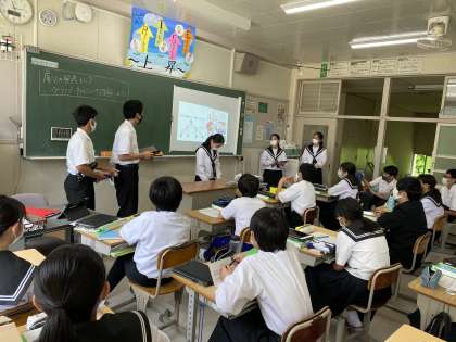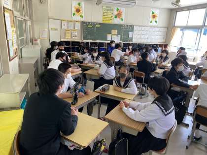 気温が30度近くまで上がり、暑い夏の季節がもうすぐそばまで来ているように感じます。そんな暑い中ですが、松平中の生徒は元気いっぱいに活動しています。本日もソーシャルディスタンスを保ちながらグループ活動をしたり、タブレットを使用して発表をしたりして頑張っていました。