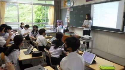 生徒たちは、家庭で学習用タブレットの学習支援アプリ「Teams」を立ち上げて、文章を提出する課題に取り組んだ感想や気づきなどを報告していました。