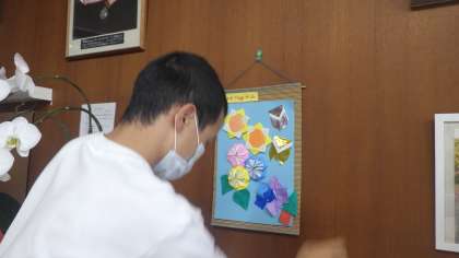 7.8組の生徒が作業の授業で制作した季節の掲示物が完成し、校長室に掲示しました。毎年、定期的に掲示物を制作し校長室や職員室入口に掲示しています。もし本校にご来校される機会があれば、ぜひご覧ください。