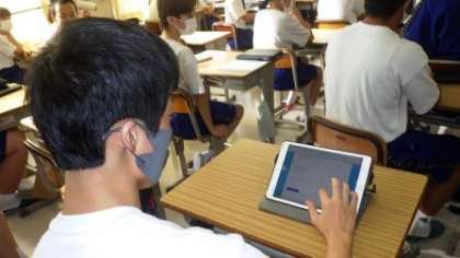 生徒一人一人が、朝の会等でタブレットのFormsを使い、睡眠時間や登校後の手洗いの実施、ハンカチの持参などの状況を入力します。養護教諭は、タブレットを使って、データを集約し、結果をグラフに表し、良い点や改善点を分析します。それを保健委員のタブレットに送信します。