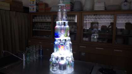 ペットボトルツリーとは、「希望」をテーマにした絵や文字を空のペットボトルに描いてい積み上げたものです。本校では、7・8組と美術部が生徒を代表して制作しました。