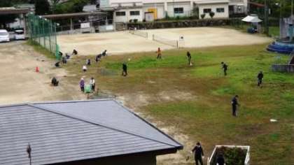 運動場やテニスコート、国旗掲揚塔付近等、広範囲にわたる草がきれいに刈り払われました。