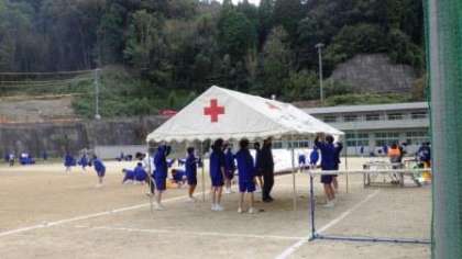 運動場では、テントの設営を行いました。また。放送係は、担当するアナウンス原稿を、マイクを通して読み上げて、練習しました。