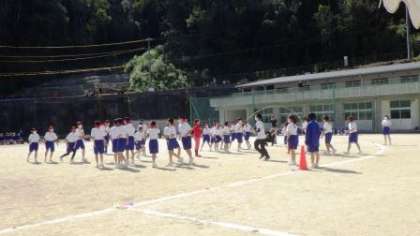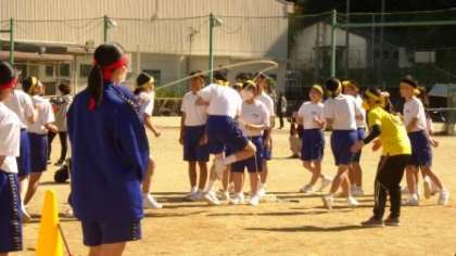 当初の計画では、学級全員が一斉に跳ぶ方法を予定していました。一層の感染対策を講じるため、1学級を2つのグループに分けて2本ずつの大縄を使い、一人ずつ縄に入る「8の字跳び」に変更して実施しました。たとえ引っかかっても、中断しても、輪の中に入った人数が累計されるルールとしました。一人一人の頑張りを積み重ねて、各学級がそれぞれの最高記録に挑戦しました。