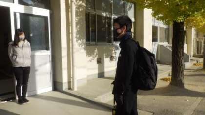朝夕の冷え込みから、登下校時には、一枚はおりたくなる季節となりました。
