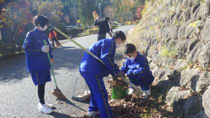 本日、本校の78組の生徒たちは校外学習で六所山総合野外センターに向かいました。現地では紅葉を見ながらハイキングをしました。また、落ち葉拾いなどの奉仕活動を行いました。活動を通して、秋の自然を感じました。さらに、ウッドパズルという木工工作にも取り組みました。生徒たちは、大自然の中での活動を通じて、仲間と協力する大切さを学ぶ有意義な時間を過ごすことができました。