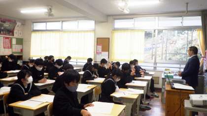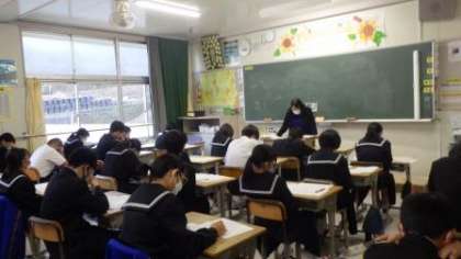 11月29日(月)は、前の週に終わった定期テストの答案用紙が、各授業で返却されました。教科担任が正解を説明し、解説をしていました。生徒たちは、間違えた問題を解き直したり、練習したりして、振り返りをしました。