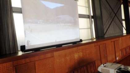 さらに、武道場では、体育祭の競技やソーランの様子を動画でご覧いただきました。