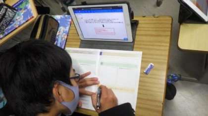 この授業では、まず、どんな言動が「誹謗中傷」にあたるのかを考えました。その際には、書くことが苦手でも無理がないように、学習用タブレットのスカイメニュー「発表ノート」を活用し、教師が用意した言葉のカードを、移動することで分類して考えました。そして、身近で耳にすることのある何気ない言葉も、「誹謗中傷」の定義によれば、それにあたることに気づきました。また、その理由についても確認しました。