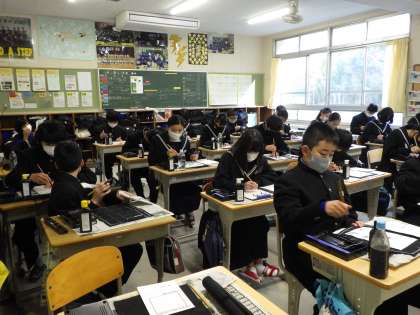 本日の5時間目、1年生の学活の授業では、生徒にとっての「今年の1文字」を筆で書きました。生徒達は悩みながらも、楽しく今年の出来事を振り返り、「今年の1文字」を考えていました。「楽」と書いていた生徒に、書いた理由を聞いてみると「学校が楽しかったから」と答えてくれました。ぜひ来年も「楽」しい学校生活を送ってもらいたいものです。その前に、健康に気をつけて「楽」しい冬休みを過ごしてくださいね。
