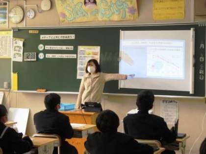 健康的な生活を送るために「メディアと上手に付き合おう!」をテーマに、1年生の生徒を対象に、養護教諭が授業を行いました。