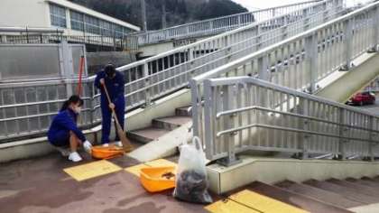 2月15日(火)の午後、今までお世話になった学校地域に感謝し、貢献する気持ちを育むことを目的に、3年生が、「愛校活動」を行いました。クラスごとに、主に学校周辺の通学路を分担して清掃をしました。1組は、弓道場から九久平小学校まで、2組は校門坂から松平トンネルまで、3組は校門坂から新双竜橋までを担当しました。箒で落ち葉を掃いたり、草を刈ったり、歩道橋を磨いたりしました。ひたむきに取り組む姿が、とても立派でした。