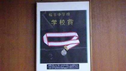 また、校長から、学校賞を授与しました。この賞は、学校生活の向上につながる望ましい生活や行動を行うことができた生徒に贈られます。各学級2名ずつ受賞しました。受賞の証となるメダルは、歴代育友会長様、同窓会長様から贈られます。