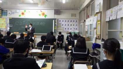 令和4年度から、高校入試制度が変わることを受けて、2月28日(月)と3月1日(火に、1・2年生の各教室において、高校入試説明会を行いました。
