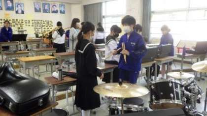 部活動見学2 公開日 2022/04/20 更新日 2022/04/20 お知らせ 4月20日(水)、授業後に、1年生が第2回目の部活動見学を行いました。 今日は、生徒たちが各自で、希望する部活動を見学しました。 2年生や3年生の練習の様子を見たり、手ほどきを受けて体験したりしました。