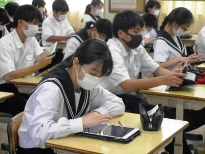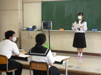 5月6日(金)の生徒総会は、学習用タブレットを活用してリモートで行い、生徒会執行部や各委員長から活動方針が提案されました。生徒たちは、提案をよく聞いて、承認の回答をタブレットで行い、全校でよりよい学校づくりのために責任をもって行動する意欲を高めました。