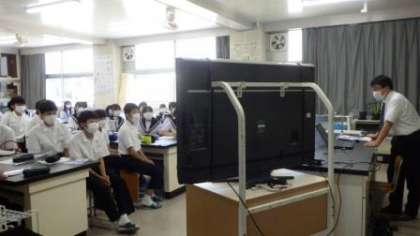 前半で5校の高校の先生が2回ずつ同じお話をしていただき、後半は、別の5校が同様に行いました。生徒や保護者が教室を移動し、前半で2校、後半で2校、計4校の希望する学校のお話を聞きました。高校の先生のご案内や司会進行は代表の生徒が務めました。熱心に話を聞き、進路選択の貴重な機会となりました。