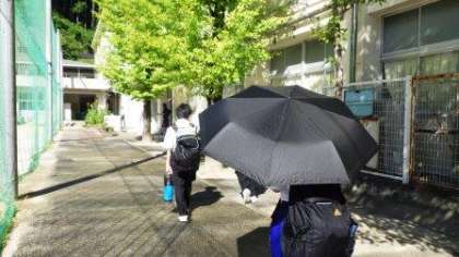 登下校時には、日傘や帽子の利用を勧めています。朝から日差しが強くなり、帽子や日傘を使う生徒も増えてきました。