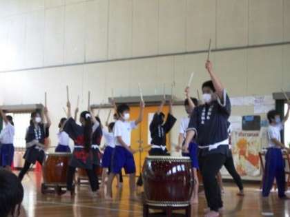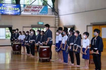 7月20日(水)の文化部発表会では、初めに、わ太鼓部が発表しました。