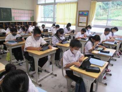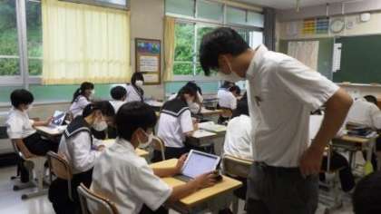 9月2日(金)の1年生の数学の授業では、初めに学級全員で、その時間の授業のねらいに合わせた課題にキュビナで取り組みました。また、授業の後半には、生徒たちが自分のペースで、自主学習として課題に取り組んでいました。