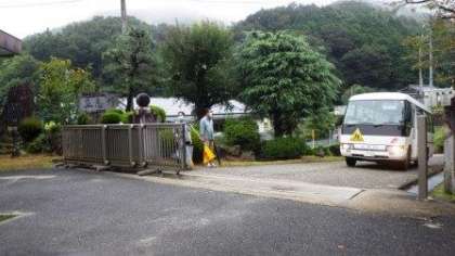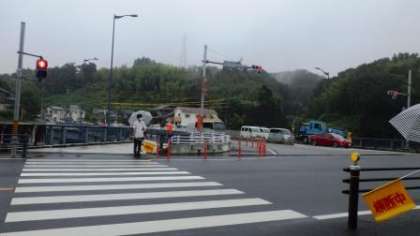 写真は、正門付近と松平橋の横断歩道の様子です。