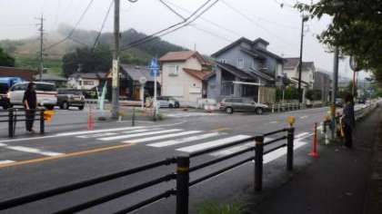 9月7日(水)育友会の育成委員会の主催による交通安全指導とあいさつ運動を行いました。写真は、湊橋付近と学区コンビニエンスストア前の横断歩道の様子です。