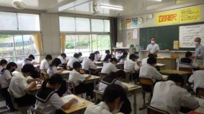 9月7日(水)〜9日(金)は、前期の学習内容を範囲とする期末テストです。今回は、9教科を3日に分けて実施します。生徒たちは、事前に、受検の仕方について説明を聞きました。