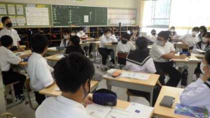 授業力向上WEEKの一環で、15日(木)の5時間目には、1年2組が道徳科の授業を行いました。