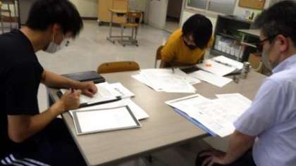 9月29日(木)は、生徒下校後に教職員が、担当する教科に分かれて授業改善のための話し合いをしました。