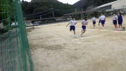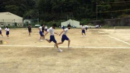 保健体育科の授業では、リレーのバトンパス練習をしていました。