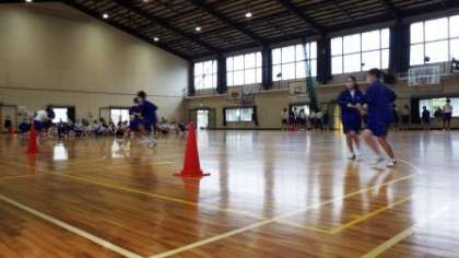 体育委員の生徒による準備体操に始まり、まず、大繩による「8の字跳び」の練習の後、3分間で回数を競いました。次に、選手として活躍する「ボール運びリレー」「800Mリレー」「綱引き」のチームごとに、本日体育館で実施可能な「ボール運びリレー」に全員が取り組みました。当日出場する種目とは異なっても、作戦を立て、協力して行うことでタイムがよくなることを実感しました。
