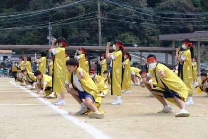 1組団は練習の開始からこまかな動きをタブレットでも配信したり、目標をホワイトボードで示したりして、よく考え、ち密な取組を重ねていて感心させられました。そして、アニメ「ワンピース」と団カラーの赤になぞらえて、「全燃 PIECE FILM RED」をテーマに、団結して、燃え尽きるくらいまで、全力を出しきろうとする熱気が伝わり圧倒されました。